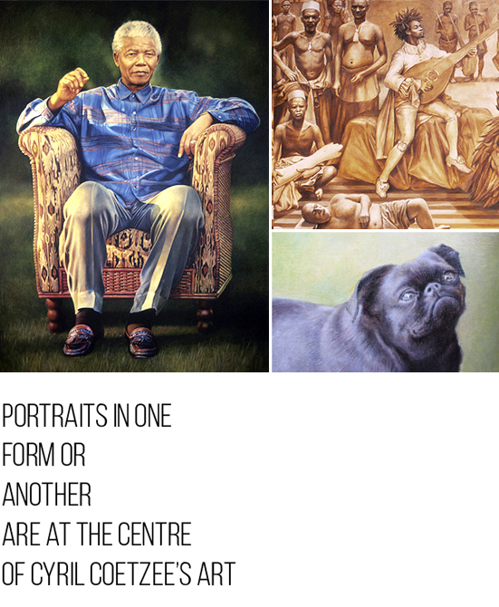 Cyril Coetzee is a well-known portrait artist. He has painted both informal and commissioned portraits throughout his career, in a number of 'styles', both realistic and expressionistic. He is best-known for the portrait of Nelson Mandela, which was used as the design for the international stamp commemorating Mandela's 90th birthday.